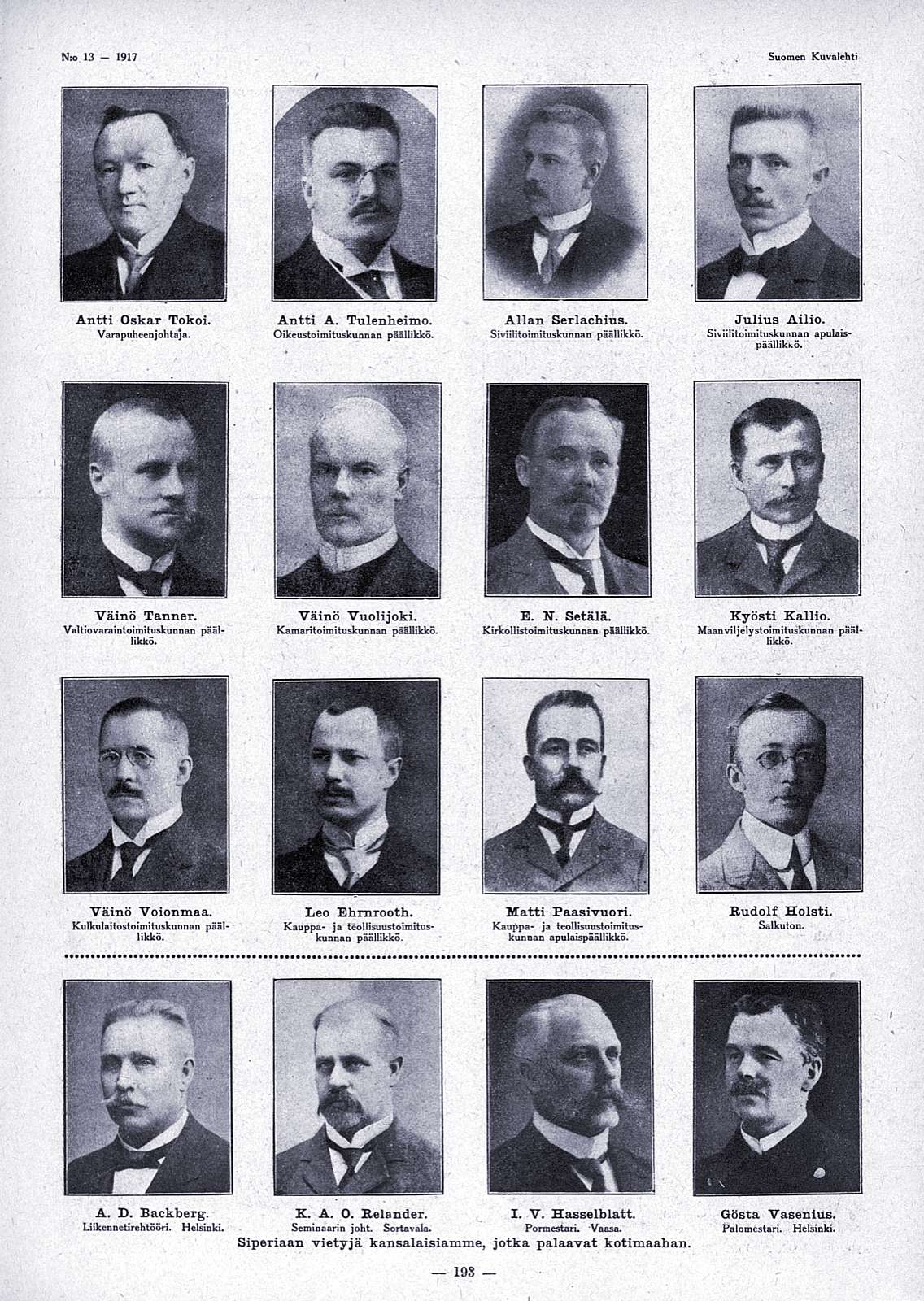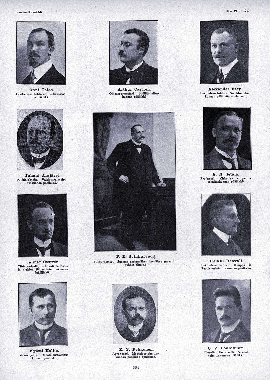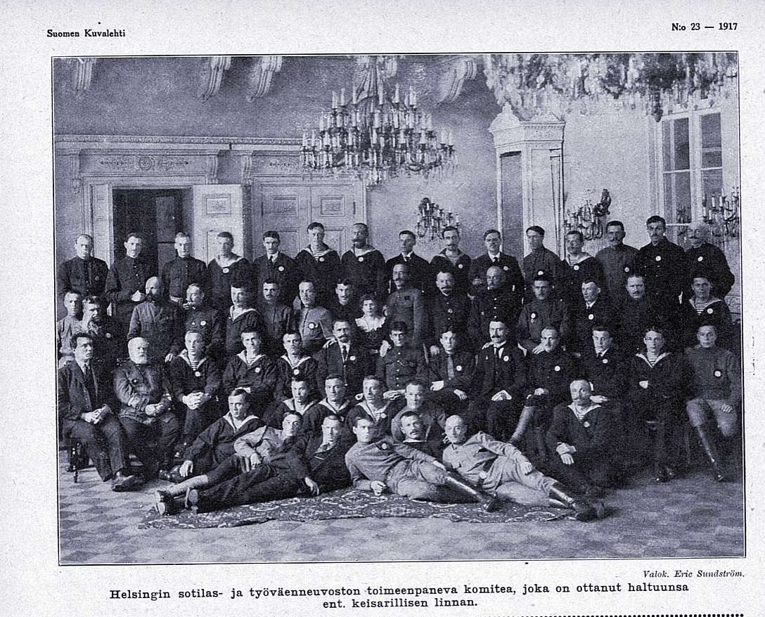neuvoston toimeenpaneva komitea keisarillisessa palatsissa (nyk. presidentinlinnassa) (Suomen Kuvalehti nro 23, 1917.) |