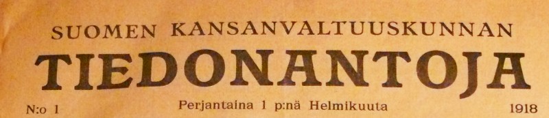 Lähde: Suomen Kansanvaltuuskunnan TIEDONANTOJA (helmikuu, 1918)