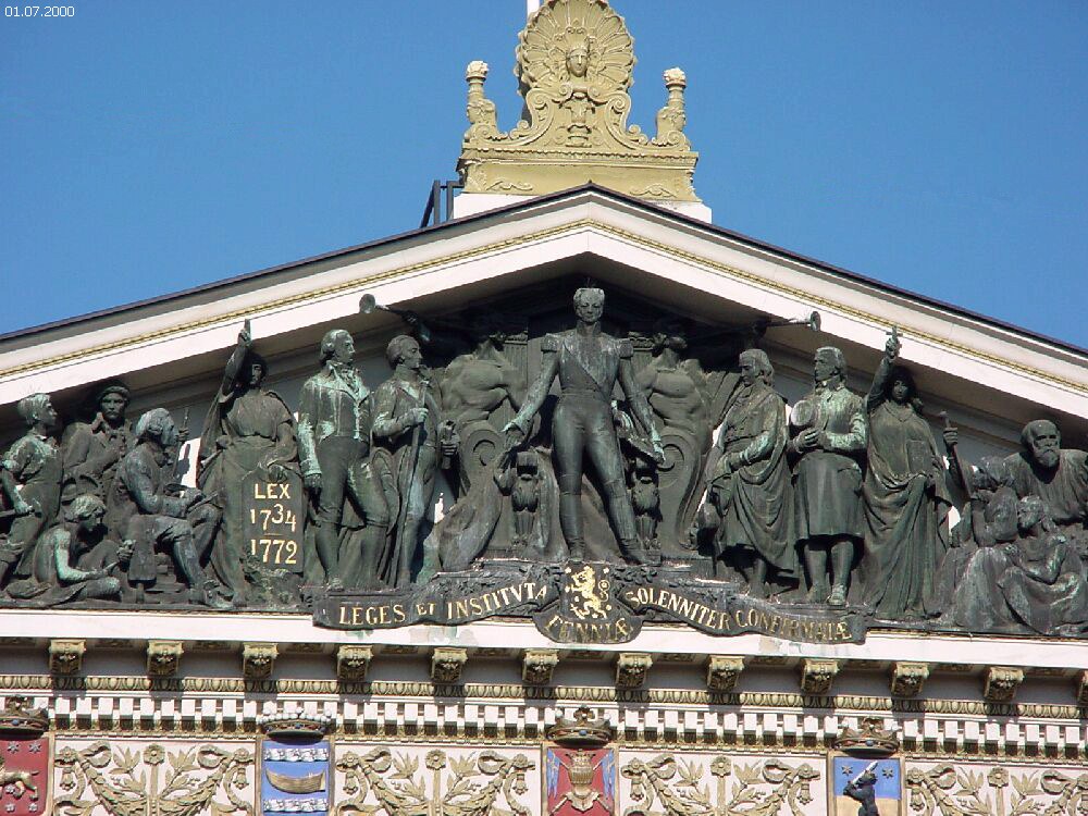 Näin muodostavat sivuryhmät mitä suuriaatteisimman pohjan keskiryhmälle, joka kuvaa P o r v o o n v a l t i o p ä i v i ä. Lempeäkatseinen, jalo keisari Aleksanteri I esitetään sinä ikimuistettavana hetkenä, jolloin hän julisti Suomen kansan kansakuntain joukkoon korotetuksi. Hänen takanaan on valtaistuin, jonka syrjillä airuet torvillaan ilmoittavat hetken merkitystä maailmalle. Keisarin ympärillä seisovat Suomen säätyjen edusmiehet: vasemmalla maamarsalkka vapaaherra Robert Wilhelm de Geer ja porvarissäädyn puhemies, kauppias Kristian Trapp, oikealla arkkipiispa Jaakko Tengström ja talonpoikaissäädyn puhemies, herrastuomari Pietari Klockars. Tämän ryhmän alla on Suomen vaakuna ja latinankielinen kirjoitus: Leges et instituta Fenniae solenniter confirmatae (Suomen lait ja laitokset juhlallisesti vahvistetut).