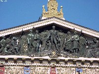 Niin on kymmenvuotisen työn jälkeen valmistunut suurin ja valtavin kuvanveistoteos, minkä suomalainen taiteilija on luonut, suuremmoinen myöskin aatteeltaan ja sisällykseltään. Se esittää S u o m e n k a n s a n k e h i t y s t ä t y ö n j a t a i s t e l u n k a u t t a e n s i m m ä i s i i n v a l t i o p ä i v i i n s ä s a a k k a 1 8 0 9.