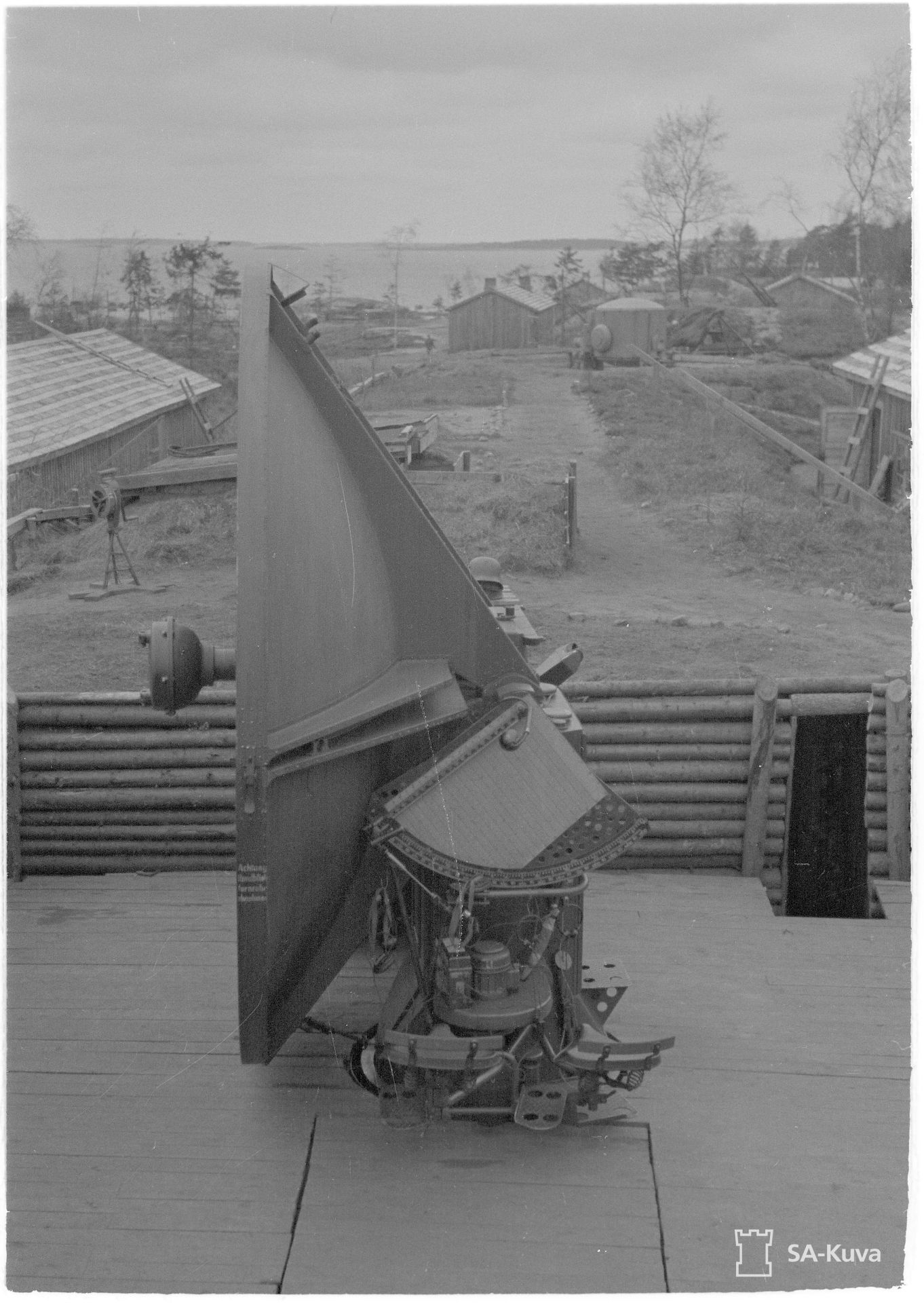 On the right: The radar "Irja" (Funkmässgerät Dora) at the Puisto battery in Lauttasaari. Picture source: The Finnish Wartime Photograph Archive, https://sa-kuva.fi