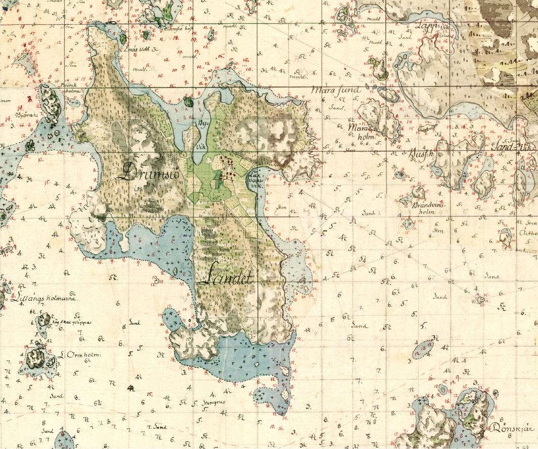 Lauttasaari (Drumsiö Landet) in a Swedish 1780 coastal map (source: Military Archives, Stockholm; courtesy of the Finnish Maritime Administration (copyright)) |