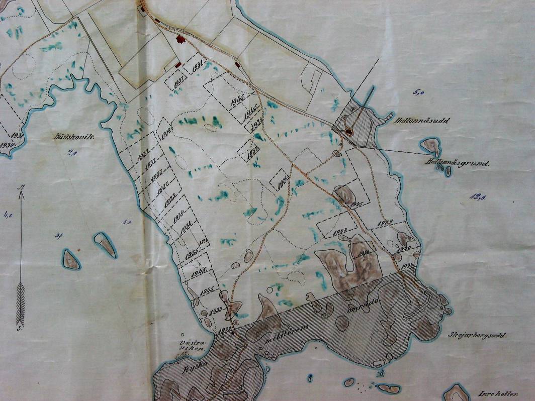 Detail map of the NE part of the island. (source: Helsinki City Archives) |