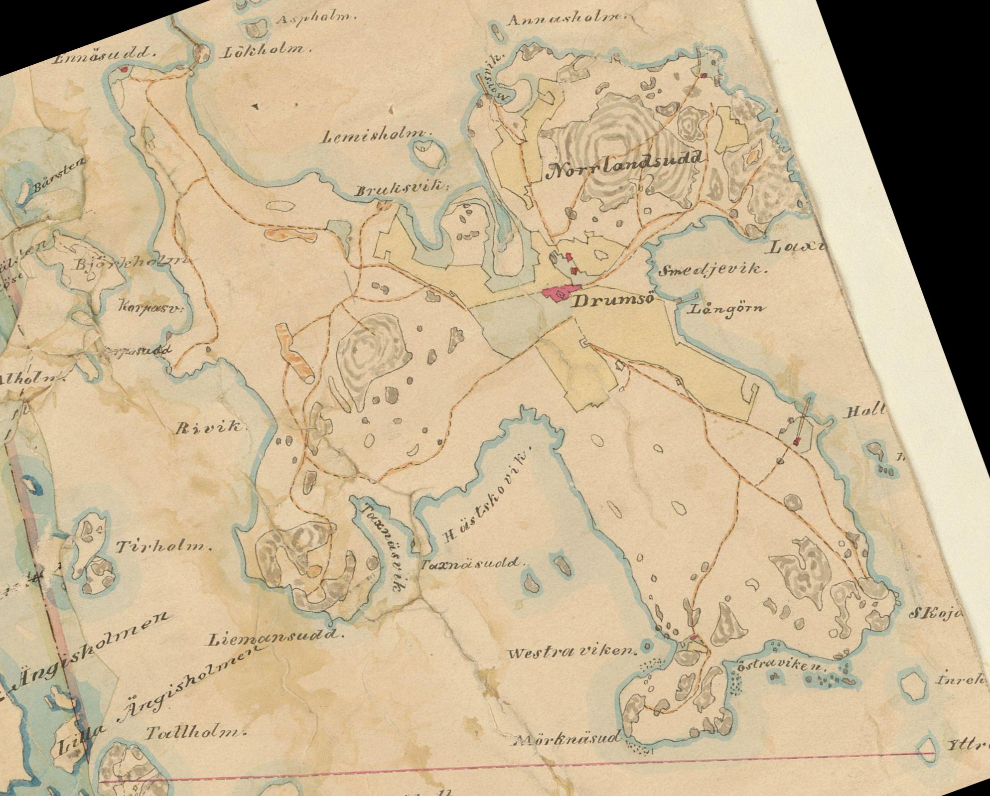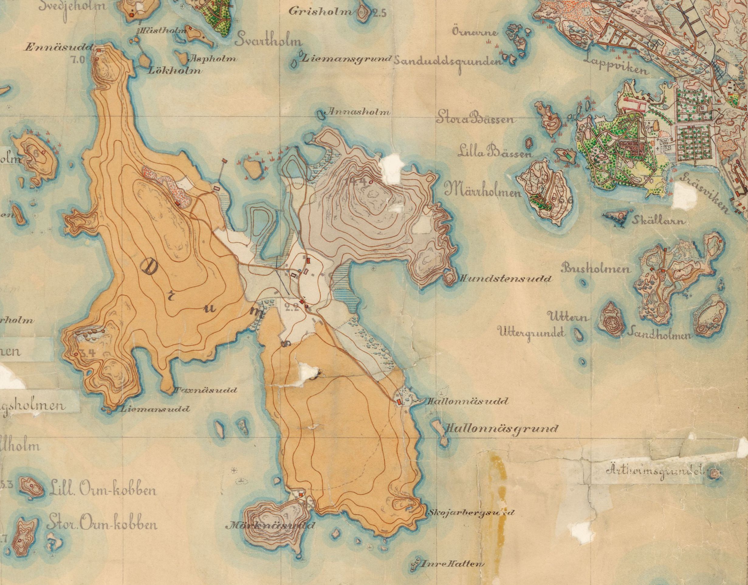 Karta öfver Drumsö of 1911. (source: Helsinki City Archives). |