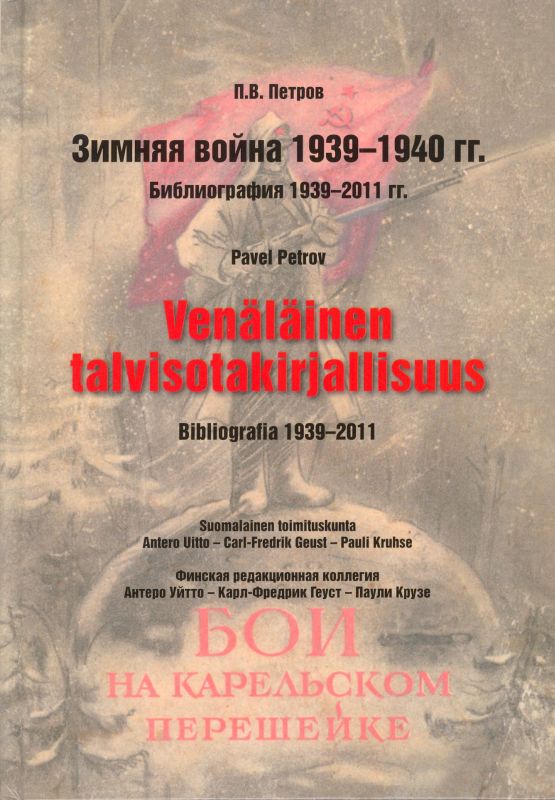 2013 Member of the Finnish editorial staff for Dr. Pavel Petrov's bibliography of Russian literature on the Finnish-Soviet war of 1939-1940, known as the Winter War. The book of 354 pages consists of, in addition to the bibliography of the years 1939-2011 itself (4,500 entries), Dr. Petrov's article about how the picture of the Winter War has changed in Russian historiography since 1939 till now, Antero Uitto's article about how the Finnish historiography sees this, as well as other material. The book is in Russian and in Finnish. Русская литература о Зимней войне - Venäläinen talvisotakirjallisuus. Docendo, 2013. ISBN 978-952-5912-97-5.